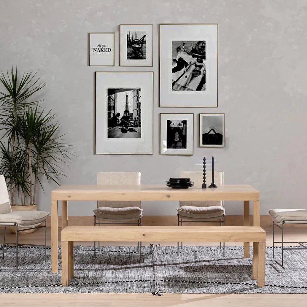 Si la mesa tiene que ser de pequeñas dimensiones, puedes compensar esos centímetros de menos con la sustitución de algunas de las sillas por un banco. Las BANQUETAS optimizan mucho mejor el espacio y es muy probable que en el espacio que necesitarías para poner 2 sillas, puedas poner un banqueta en el que quepan 3 personas sentadas ¿no te parece estupendo? Además, este banco cuando no lo uses lo podrás guardar debajo de la mesa o ubicar en otro espacio como mueble auxiliar: a los pies de una cama o en la entrada de la casa como descalzadora.