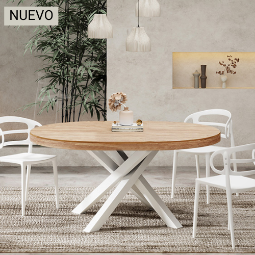 Mesa de comedor fierro blanco y madera lenga redonda da vinci.